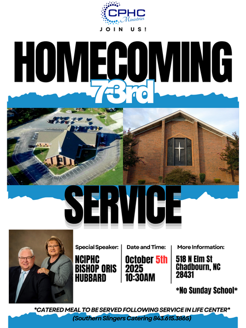 We invite you to join us October 5th, 2025 at 10:30am as we celebrate 73 years of CPHC Ministries. We will NOT be having Sunday School on this day.